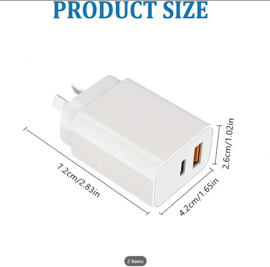 45W GaN Fast Charger, 2-Port Wall Plug with Fast Charging QC3.0, USB-C Power Adapter