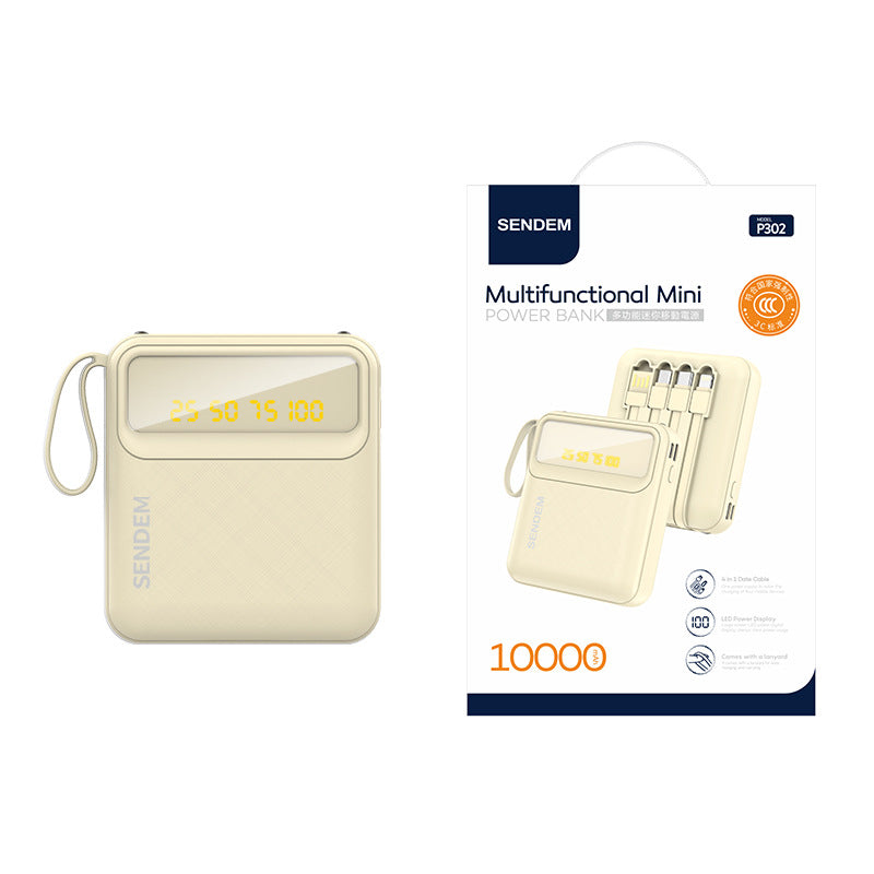 Mini Power Bank 10000mA with Cable Micro/Lightning/Type-C Output